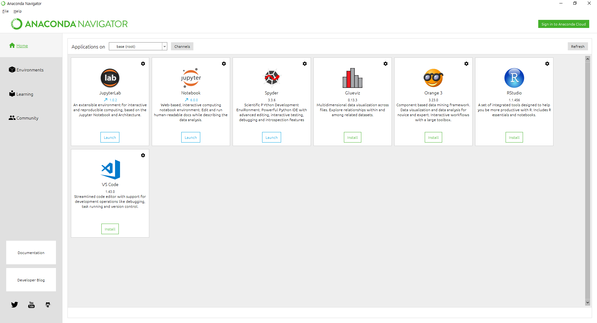 아나콘다를 설치하고 실행하면 아마도 아래와 같은 창이 열릴겁니다.