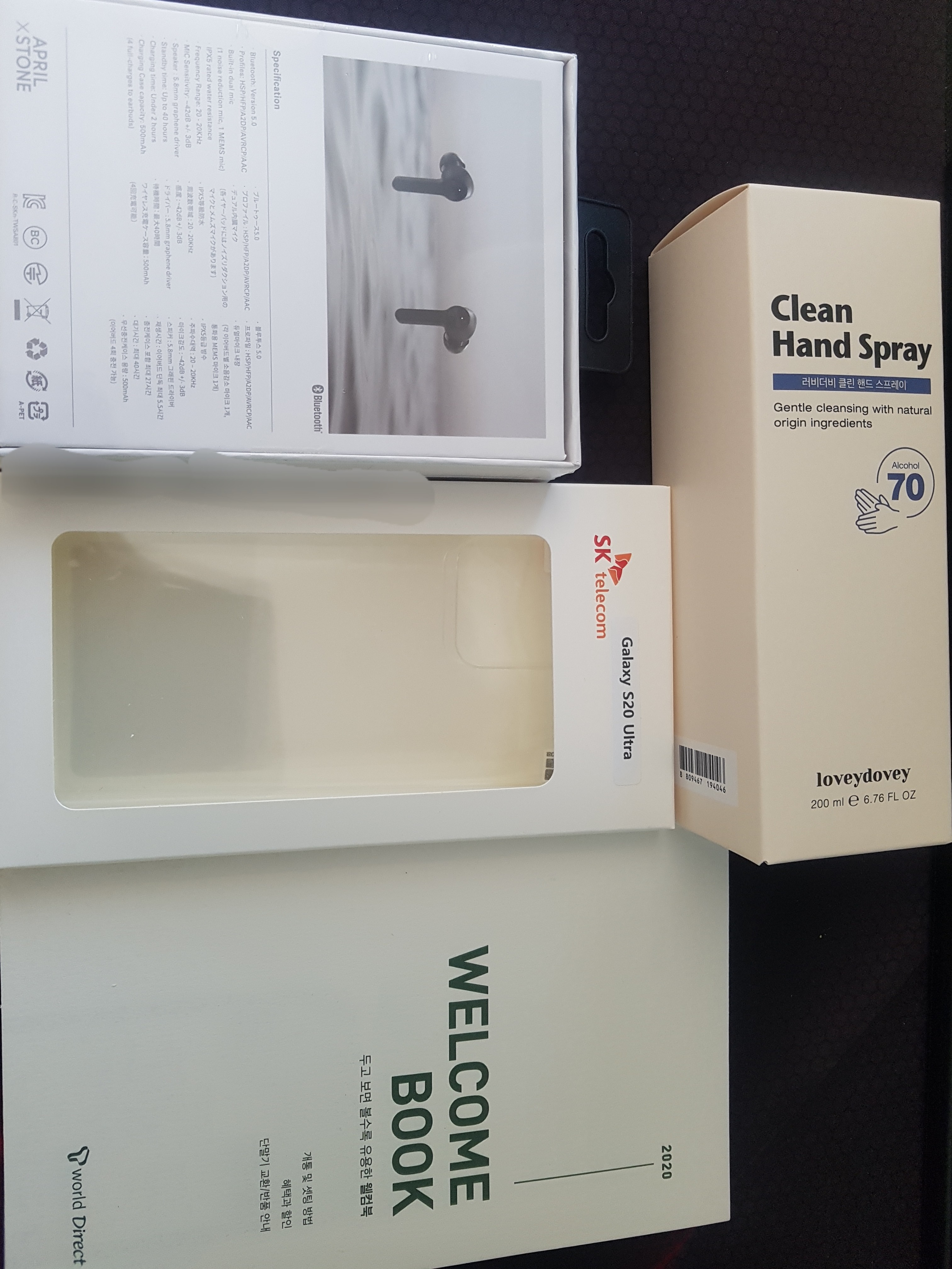 사은품으로 실리콘케이스, 손 소독제, 블루투스 이어폰 받았어요