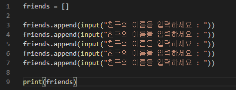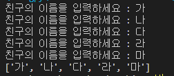 friends.append(input("친구의 이름을 입력하세요 : "))