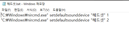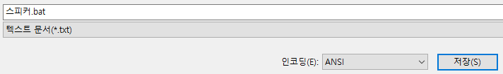 다른 이름으로 저장을 눌러서 이름을 스피커.bat로 바꾸고, 인코딩을 ANSI로 바꿔줍니다.