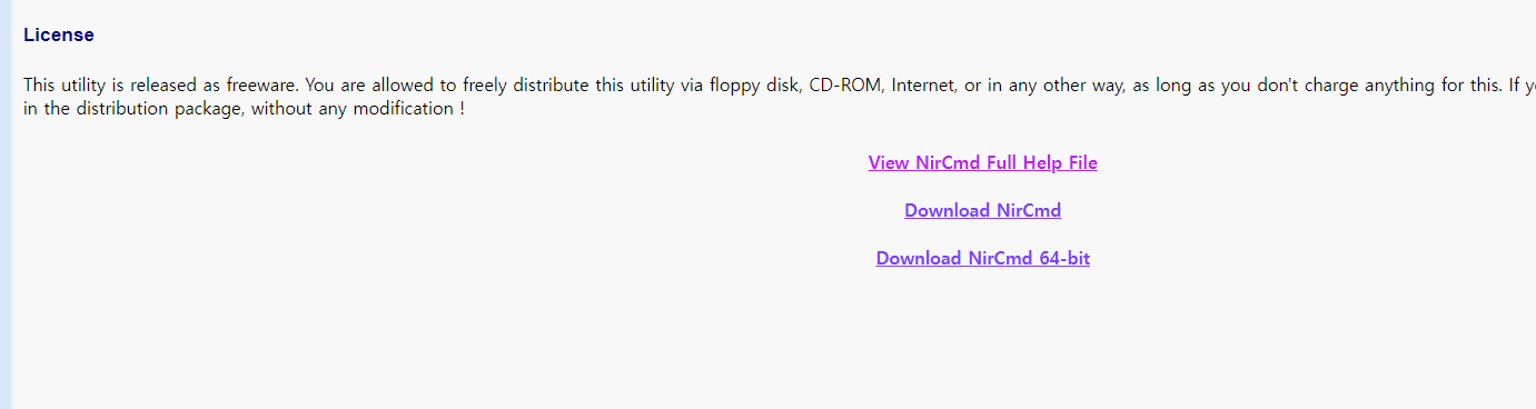 링크 : https://www.nirsoft.net/utils/nircmd.html