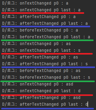 Log.d("로그", "afterTextChanged p0 last : ${p0.last()}")