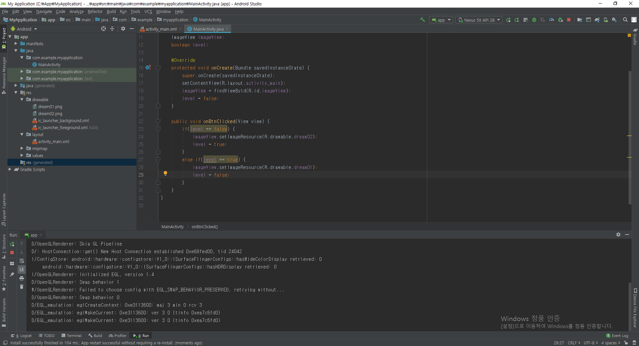 그러면 MainActivity.java로 화면이 옮겨집니다.