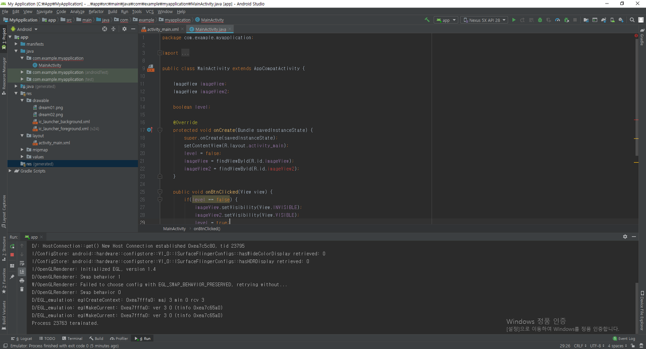 해당 프로젝트에서 이미지뷰를 하나 지우겠습니다.