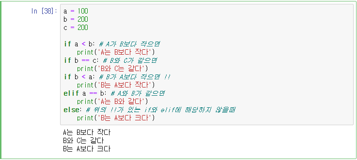 if a < b: # A가 B보다 작으면