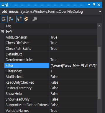 FileName에 있는 openFileDialog1을 빈칸으로 놔두고