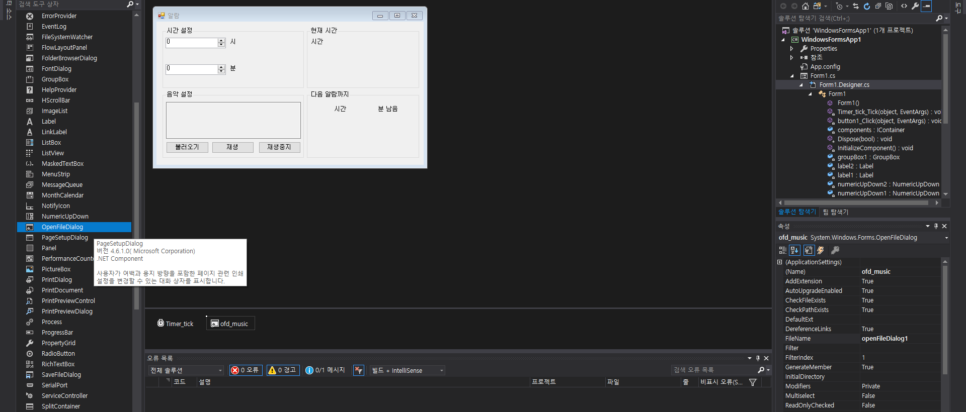음악파일을 가져 올 openFileDialog부터 사용하겠습니다.