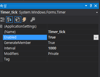 폼이 로드되면 Timer_tick의 Enabled값을 true로 설정해줍니다.
