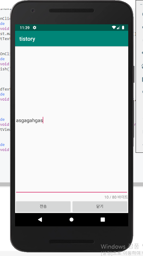 Toast.makeText(MainActivity.this, editText.getText().toString() + " 전송 완료", Toast.LENGTH_SHORT).show();