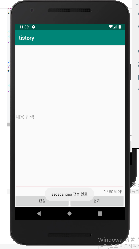 Toast.makeText(MainActivity.this, editText.getText().toString() + " 전송 완료", Toast.LENGTH_SHORT).show();