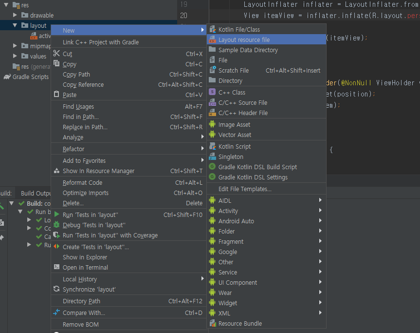 이걸 보고 따라하신 분들은 itemView.findViewById(R.id.textView); 이 구간에서 빨간줄이 뜰텐데