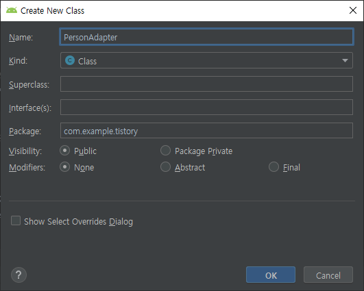 PersonAdapter라는 자바 클래스를 새로 만듭니다.