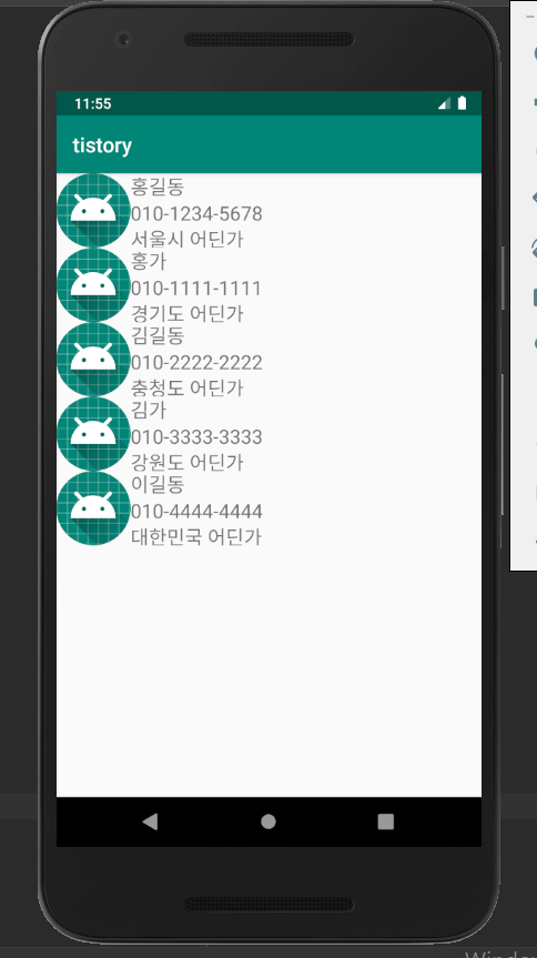 adapter.addItem(new Person("홍길동", "010-1234-5678", "서울시 어딘가"));