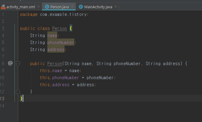 그 다음 PersonAdapter클래스에 소스를 추가해줍니다.