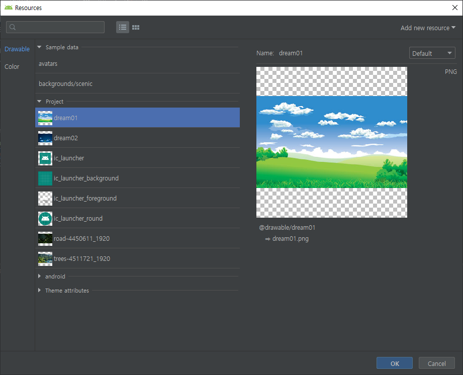 res폴더 아래 drawable 폴더에 이미지를 추가합니다.