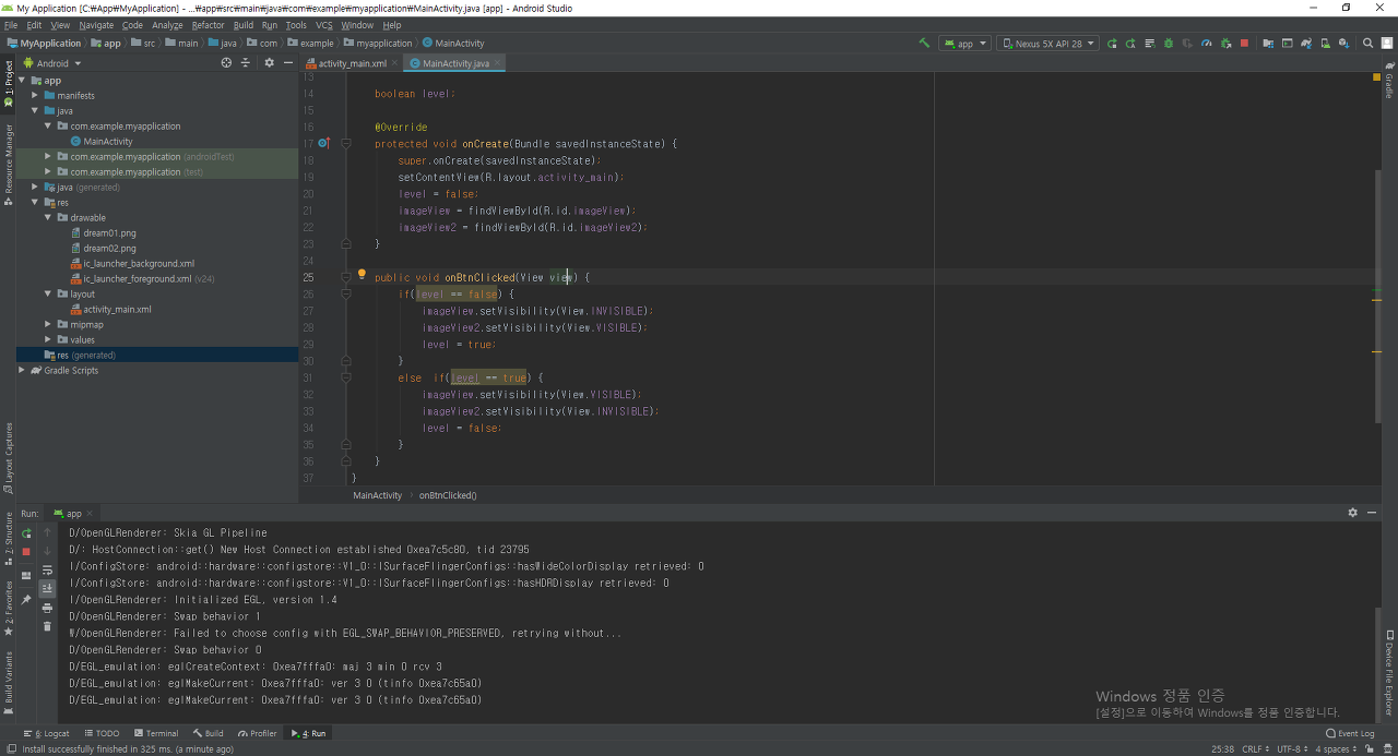 그러면 MainActivity.java로 화면이 옮겨집니다.