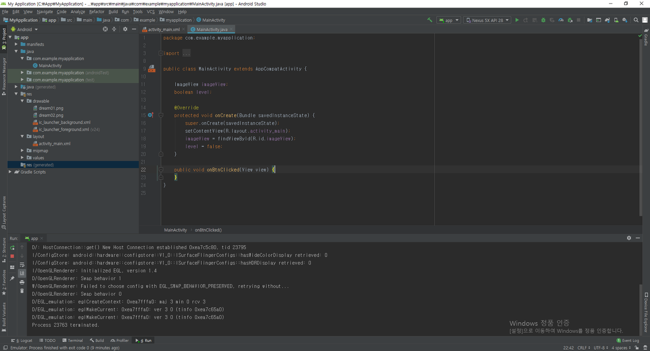 해당 프로젝트에서 이미지뷰를 하나 지우겠습니다.