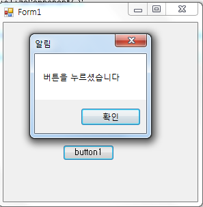 MessageBox.Show("버튼을 누르셨습니다", "알림");